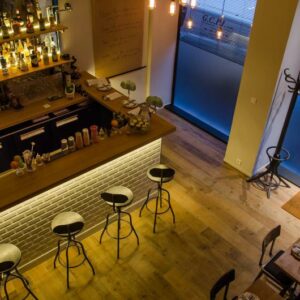 Le projet : Pour ce bar-restaurant du vieux Lyon, nous avons du commencer par refaire un mur de fond en utilisant du parement reproduisant les pierres des autres murs de l'établissement.