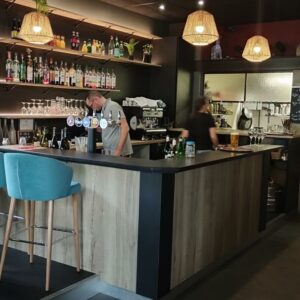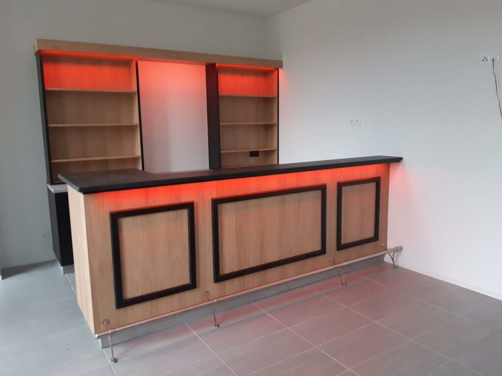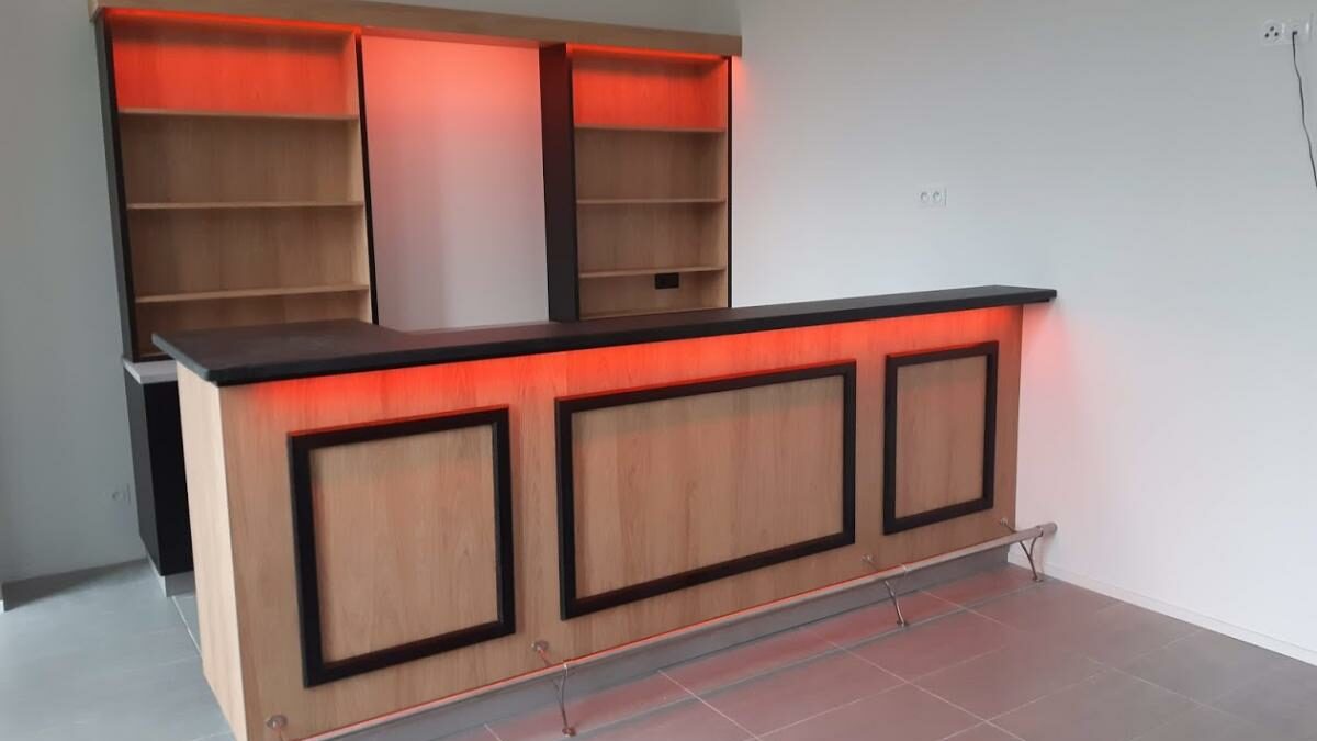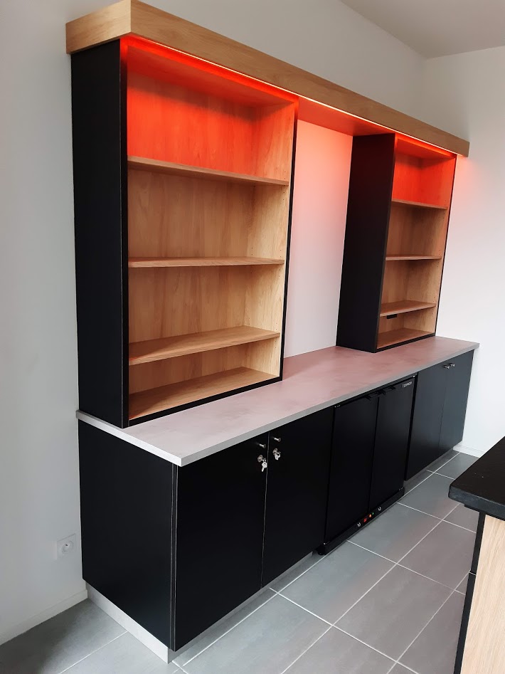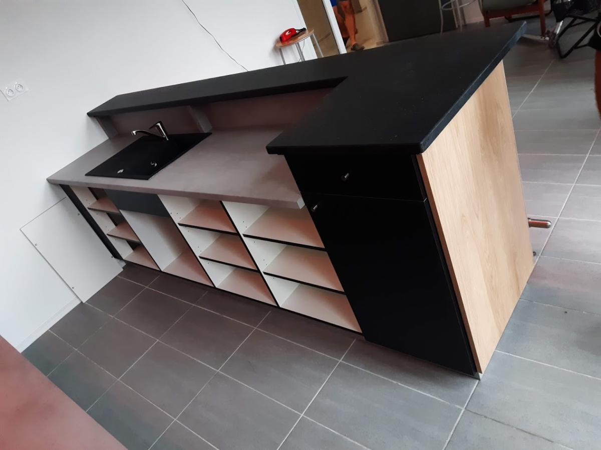 Le projet : Avec dessus en granite noir flammé, un joli petit comptoir pour prendre un café au retour d'une mission pour les pompiers de Gex.