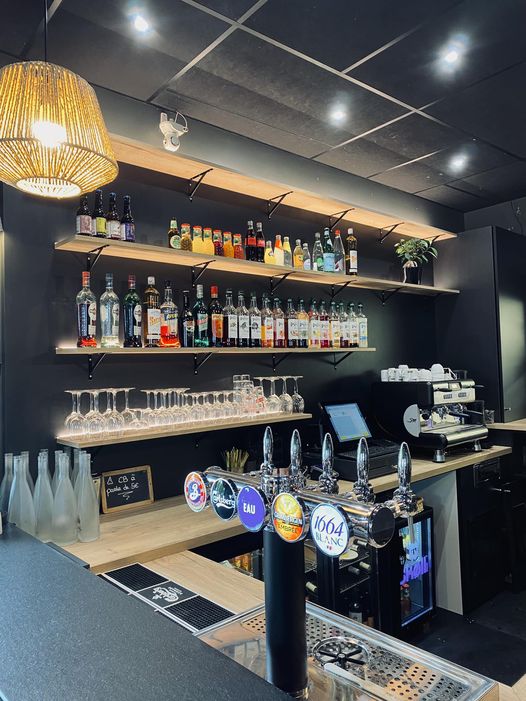 Comptoir un peu technique puisqu'il faut intégrer le groupe bière et les fûts. Egalement on en profite pour mettre en place un grand passe-plat pour la cuisine. Et on termine par un éclairage adapté et subtil !