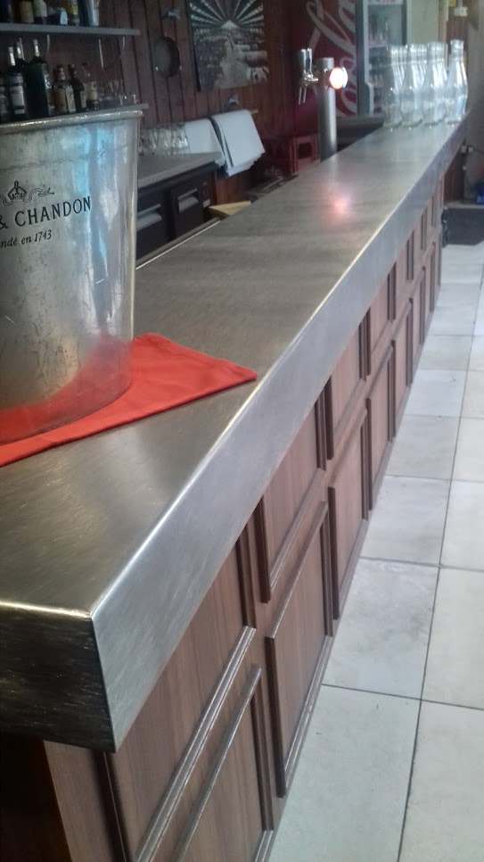 Le projet : Un joli comptoir pour cette institution lyonnaise, avec plateau en inox. A voir dans le quartier de Gerland.