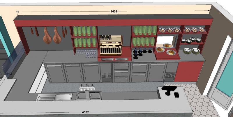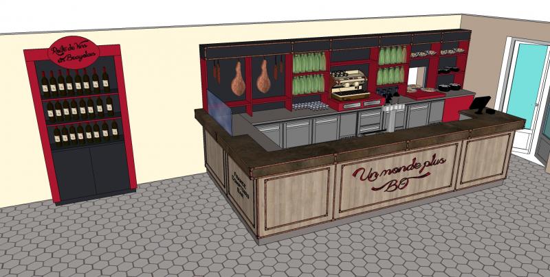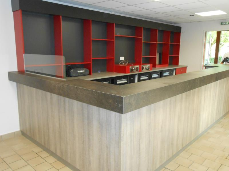 Le projet : Création d'un comptoir en stratifié pour l'envoi en salle des apéritifs du restaurant, mais aussi un coin préparation pour le snack toute la journée.