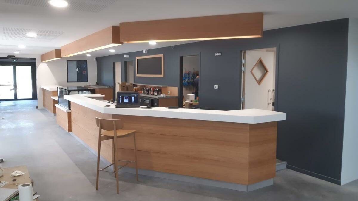Climb UpLieu : Les Ponts de Cé Le projet : Salle d'escalade près de Angers, avec 3 postes d'accueil, coin bar avec vue sur la salle pour se détendre après la grimpe !Façade en chêne, dessus en résine type Corian. Partager Articles liés30 janvier 2026Hôtels : Trianon Palace – Versailles (78)Lire la suite30 janvier 2026Sports & Loisirs : Climb Up – Lille (59)Lire la suite29 janvier 2026Sports & Loisirs : Climb Up – CaenLire la suite